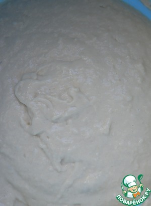 Дрожжи развести в теплом молоке, добавить муку до консистенции сметаны, поставить в тёплое место и дать увеличиться опаре в два раза.