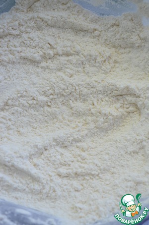 В просеянную муку добавить заварной крем и пудинг, все перемешать.