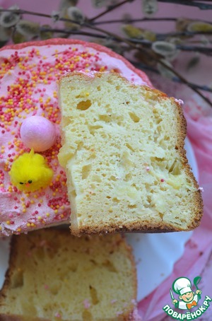Пасхальный кулич с ананасом, пудингом и заварным кремом