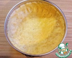 • Тесто пальцами распределить по дну формы и поднять по бокам наверх.