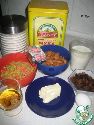 - Сухофрукты (изюм, курага, цукаты - в тесто) — 450 г