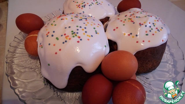 У меня всегда проблемы с белковой глазурью для куличей. То белки не хотят взбиваться, то с добавлением сахара текут. А в этом году столкнулась с еще одной проблемой. Глазурь отлично взбилась, хорошо намазывалась, а вот засыхать никак не хотела. Нужно идти святить куличи, а глазурь липнет у рукам. Но вот со мной мамина подруга поделилась рецептом глазури, которая застывает "намертво" за ночь и готовится очень просто. Рецепт взят из какой-то пасхальной брошюрки.