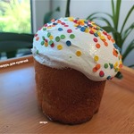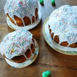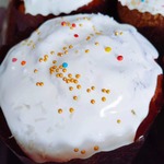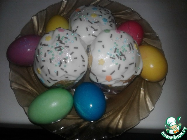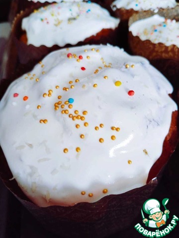 Покрываем глазурью куличи. Она может стекать, это нормально и красиво. Но она в любом случае застынет за счет крахмала.
