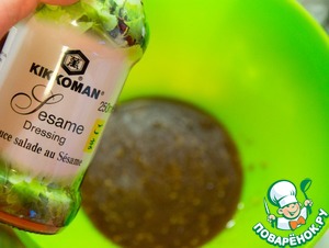 - Соус (кунжутный Киккоман - 3 ст.л.: тайско-китайский - 4 ст.л.)