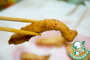 Куриное филе с лимонно-кунжутным вкусом в экзотическом соусе. Я бы отнесла это к снекам, потому что остановиться невозможно... Как семечки.