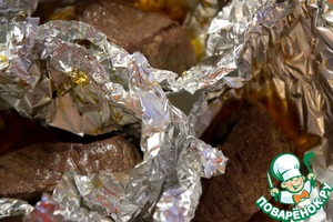 Завернуть каждый кусок в фольгу и отправить в духовку (180 град.) на 40 минут.