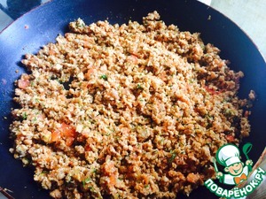 На помидорах сделать крестообразный надрез и залить на 1 минуту кипятком. Затем снять кожицу и натереть на терке в жарящийся фарш, туда же выдавить чеснок, порезанный укроп, посолить и добавить специи. Индюшачий фарш жарится очень быстро, на все-про все у вас уйдет минут 7. -