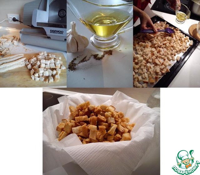2. Нарезаем хлеб кубиками (идеально подойдут 8-10 мм)