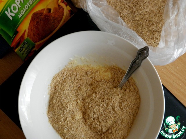 • Всыпать овсяные отруби. В рецепте было указано 70-80гр, но всыпав 70гр я получила на выходе очень крутое тесто. Приходилось обильно смачивать руки водой при формовке корзиночек. Еще я добавила щепотку корицы – люблю сочетание вишни и корицы.