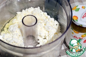 В чашу процессора поместить творог, сахар, яичный белок и щепотку ванилина.
