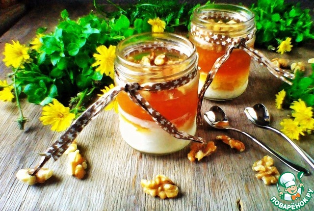 Рецепт «Творожная запеканка в банке с абрикосовым желе»: