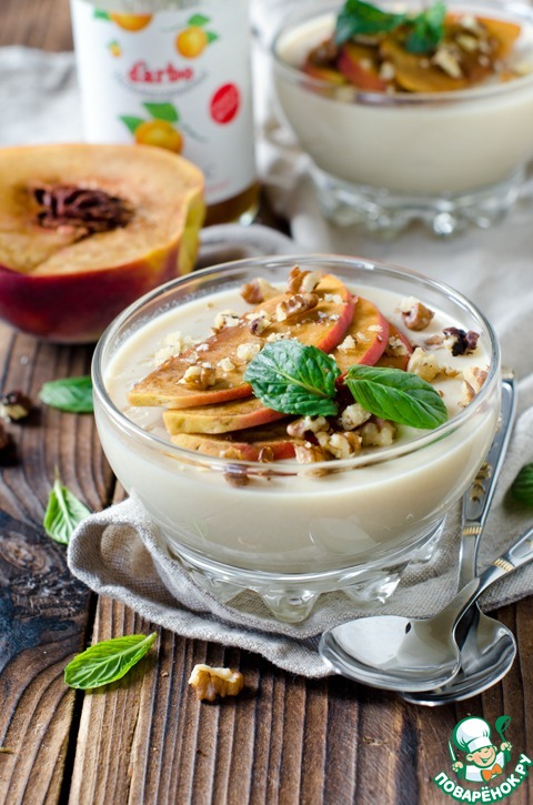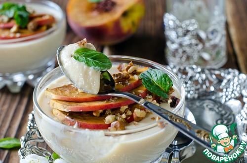 Отправить в холодильник на 5-6 часов. Перед подачей украсить свежими фруктами или ягодами и грецкими орехами, можно так же украсить листочками мяты. Приятного аппетита!!!