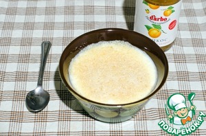 Молоко с желатином нагреть, чтобы желатин растворился, но не доводить до кипения.