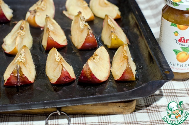 Яблоки порезать ломтиками и запекать в разогретой до 180 градусов духовке до мягкости, около 20 минут.