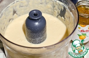 В чашу процессора к яблокам добавить сметану, абрикосовый конфитюр и пюрируем. Затем вливаем молоко с желатином и взбиваем около 2 минут. -