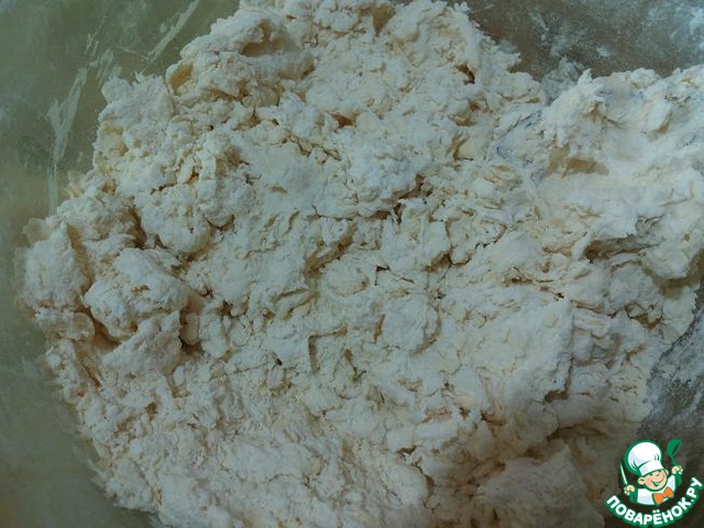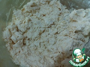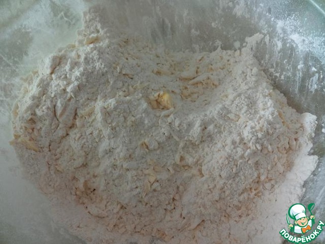 Холодное масло протереть через терку вместе с мукой в крошку,