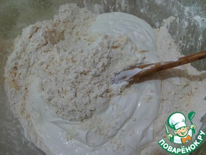Добавить соду и муку,