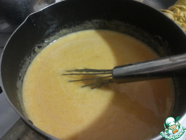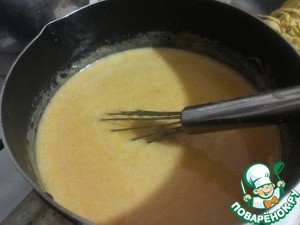 Влить в пюре яичную массу и, помешивая, варить на среднем огне до первой бульки и сразу снять с огня. Поставить остывать.