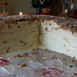 К сожалению, я не могла по понятным причинам сфотографировать тогда в разрезе или кусочек торта.