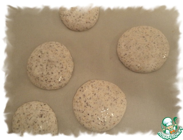 Наполнить белковой массой кондитерский мешок или можно обыкновенный полиэтиленовый пакет. Срезать кончик и отсадить на пергаментную бумагу кружочки примерно одинакового диаметра.