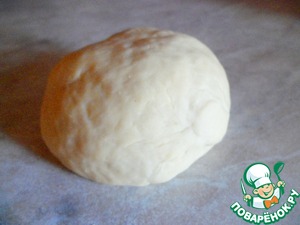 • Довести воду с солью до кипения и залить ей половину нормы муки, аккуратно перемешать лопаткой, затем постепенно добавляем оставшуюся муку и крахмал. Вымешиваем эластичное тесто, которое накрыв полотенцем оставляем отдыхать.