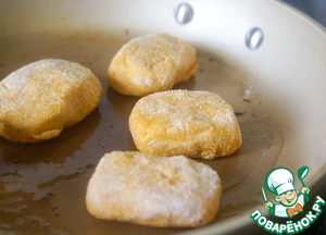 Добавить к пюре панировочные сухари, сформировать аккуратные шарики/палочки/брусо чки, обвалять в сухарях и обжарить на утином жире либо сливочном масле до румяности. Сохранять теплыми.