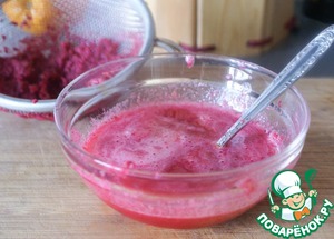 Для ягодного соуса-подливы протереть красную смородину через сито, чтобы отделить сок.