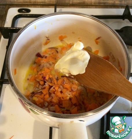 • Добавляем немного воды и плавленый сыр ( у меня viola)