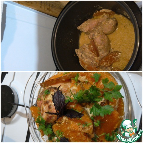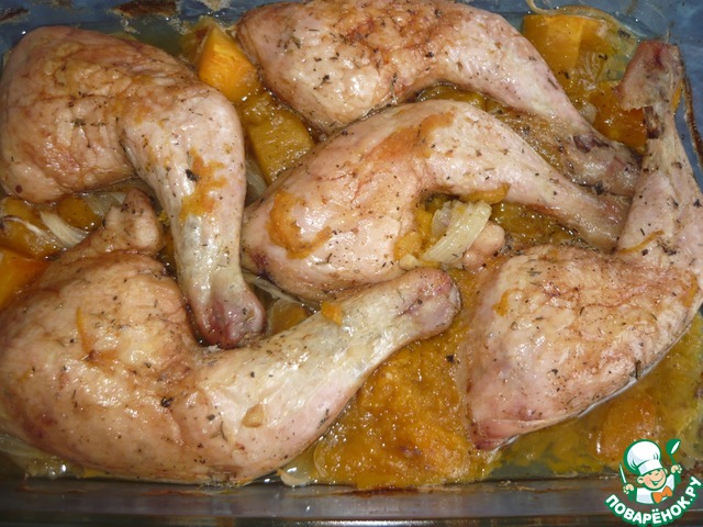 Рецепт «Куриные бедра, запеченные в сливках с тыквой»: