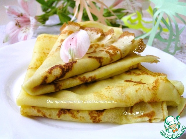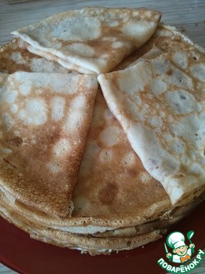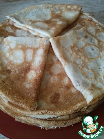Очень любит моя семья кушать блинчики, а я люблю их готовить. Конечно на сайте много вариантов этого чудесного блюда, я по стараюсь не повториться, но если вдруг будет что-то похожее, извините. Рецепт моей мамы, получаются у всех. Очень тонкие и вкусные. Сразу скажу: для блинных тортов не очень подходит этот рецепт, т. к. они очень пористые и тоненькие.