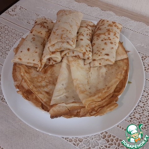 Так из указанных ингредиентов получается 35-36 штук блинчиков диаметром 20 см. Приятного аппетита!