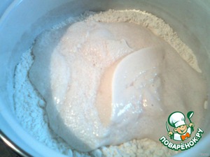 Когда забродит, добавить половину муки и поставить в тёплое место.