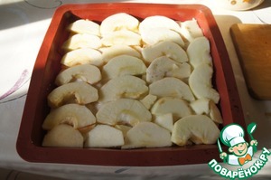 Яблоки я выложила в 2 слоя, причем первый слой слегка полила соусом, затем второй слой и сверху оставшийся соус.