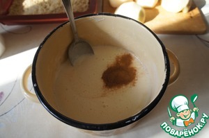 В отдельной миске взбить яйца с сахаром или медом, крахмалом и корицей.