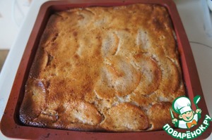 Вылить смесь на яблоки. Запекать 10 минут, затем уменьшить температуру до 180* С и продолжать печь около 35 мин.