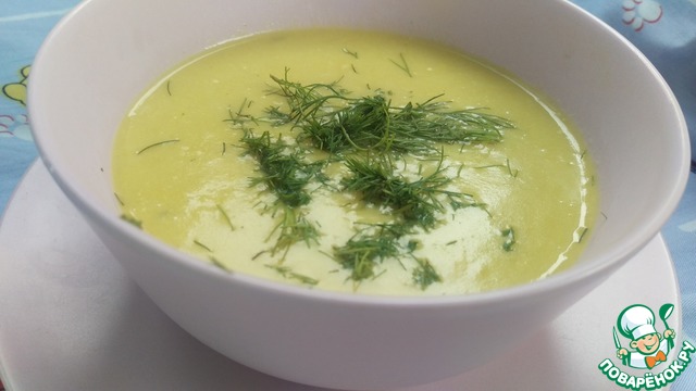 - Бульон (куриный, густота супа – по желанию) — 0.8 л