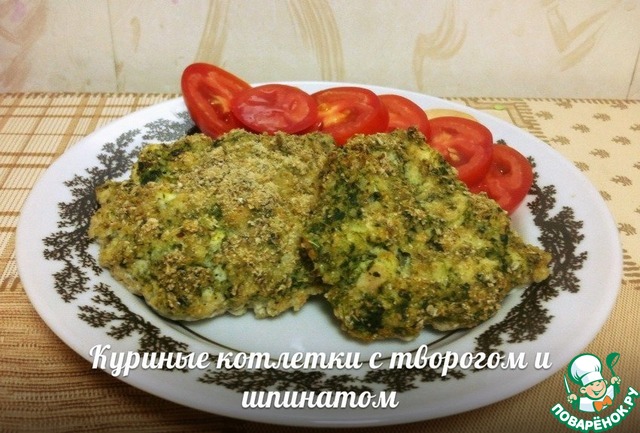 Рецепт «Куриные котлеты с творогом и шпинатом»:
