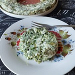 Смешать мясо, творог (лучше жирный, домашний), шпинат, яйца. Посолить, приправить. Хорошенько отбить фарш чтобы все ингредиенты хорошо соединились. -
