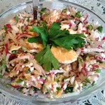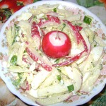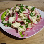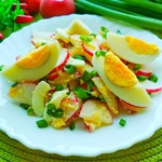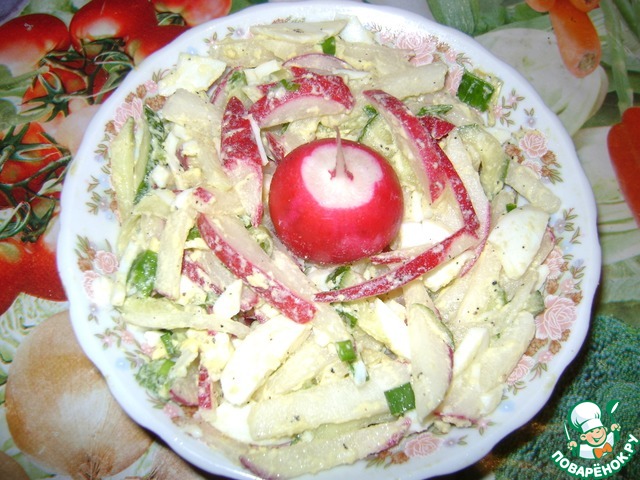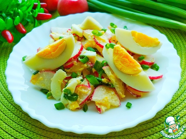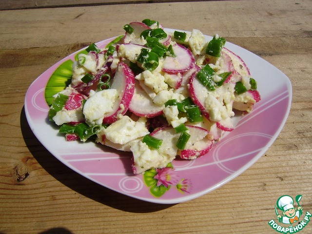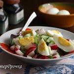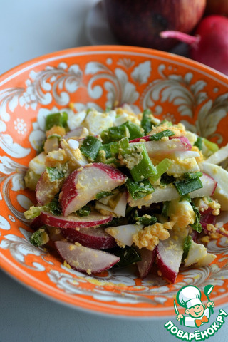 Думаю, всем знаком салат: редис+яйцо+зелень, я делаю такой салат без майонеза.