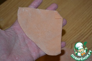 Пока работаем с одной частью - остальное тесто держим закрытым пленкой или влажным полотенцем - оно не должно высыхать -