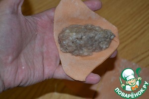 Делаем шарик и раскатываем каждый кусок теста в круг, около 6 см в диаметре. Разрезаем круг на 4 сектора.
