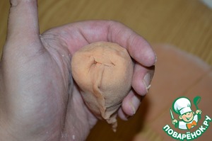 Для приготовления "морковок" делим тесто на 8 равных частей.