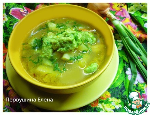Суп с зелеными клецками