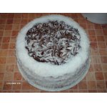 Разъемную форму d=24 см застелить бумагой для выпечки (дно), бока смазать сливочным маслом. Вылить тесто и выпекать в предварительно разогретой до 160-180 С духовке до пробы на сухую лучинку. Готовый корж охладить на решетке, разрезать пополам. Для дальнейшей сборки торта бока формы застелить плотным "файлом", на дно выложить половину коржа.