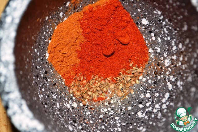 Смешиваем и перетираем в ступке специи. Количество специй регулируем на свой вкус