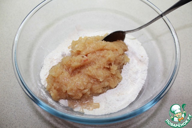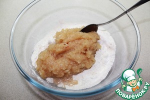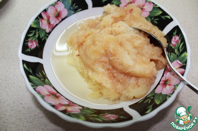 Яблочное пюре вместе с соком, который выделился смешиваем с растительным маслом