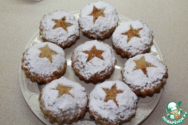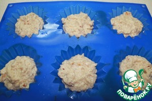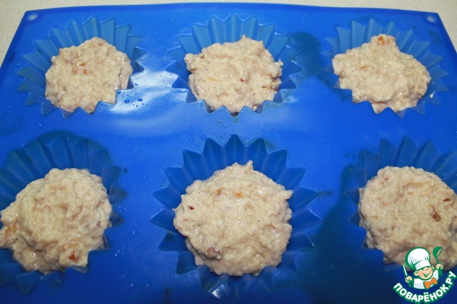 Раскладываем по формам и выпекаем при 180 градусах, проверяя зубочисткой - она должна выходить из теста сухой. По времени не могу сказать сколько т. к. у меня хорошая духовка и печет быстро, но по рецепту написано что минут 30.