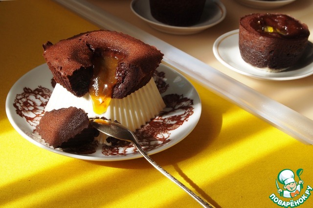 Рецепт «Шоколадный фондан с апельсиновым джемом»: