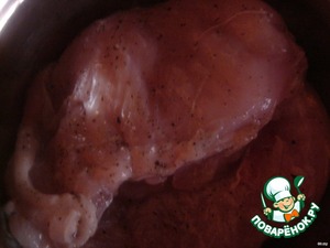 Филе обмыть, обсушить, посыпать любимыми специями (я взяла морскую соль и свежемолотый черный перец) и полить соком половинки лимона. Пусть в таком виде курочка постоит несколько минут.