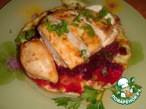 Рецепт «Куриные грудки с кукурузными лепешками и свекольным гарниром»: